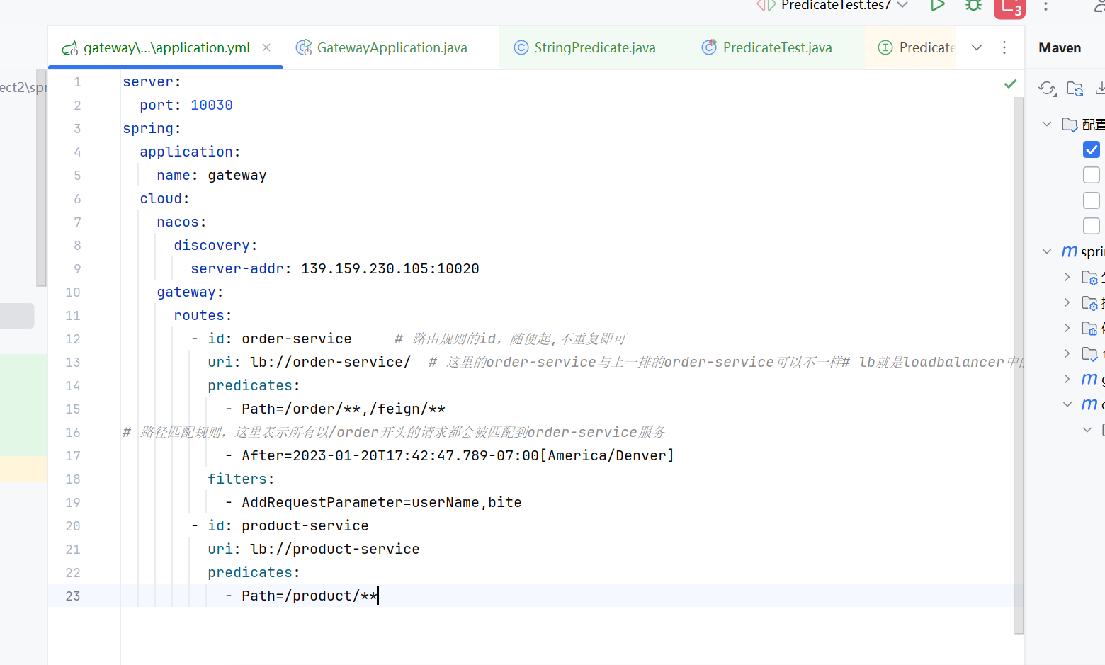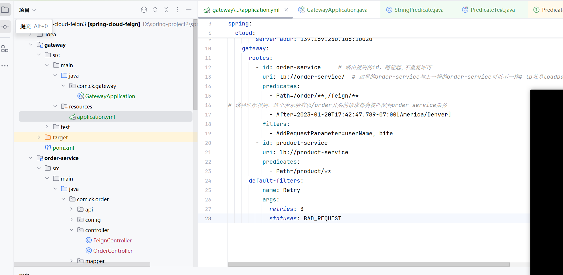 Predicate决定了请求由哪⼀个路由处理,如果在请求处理前后需要加⼀些逻辑,这就是Filter(过滤器)的作⽤范围了.