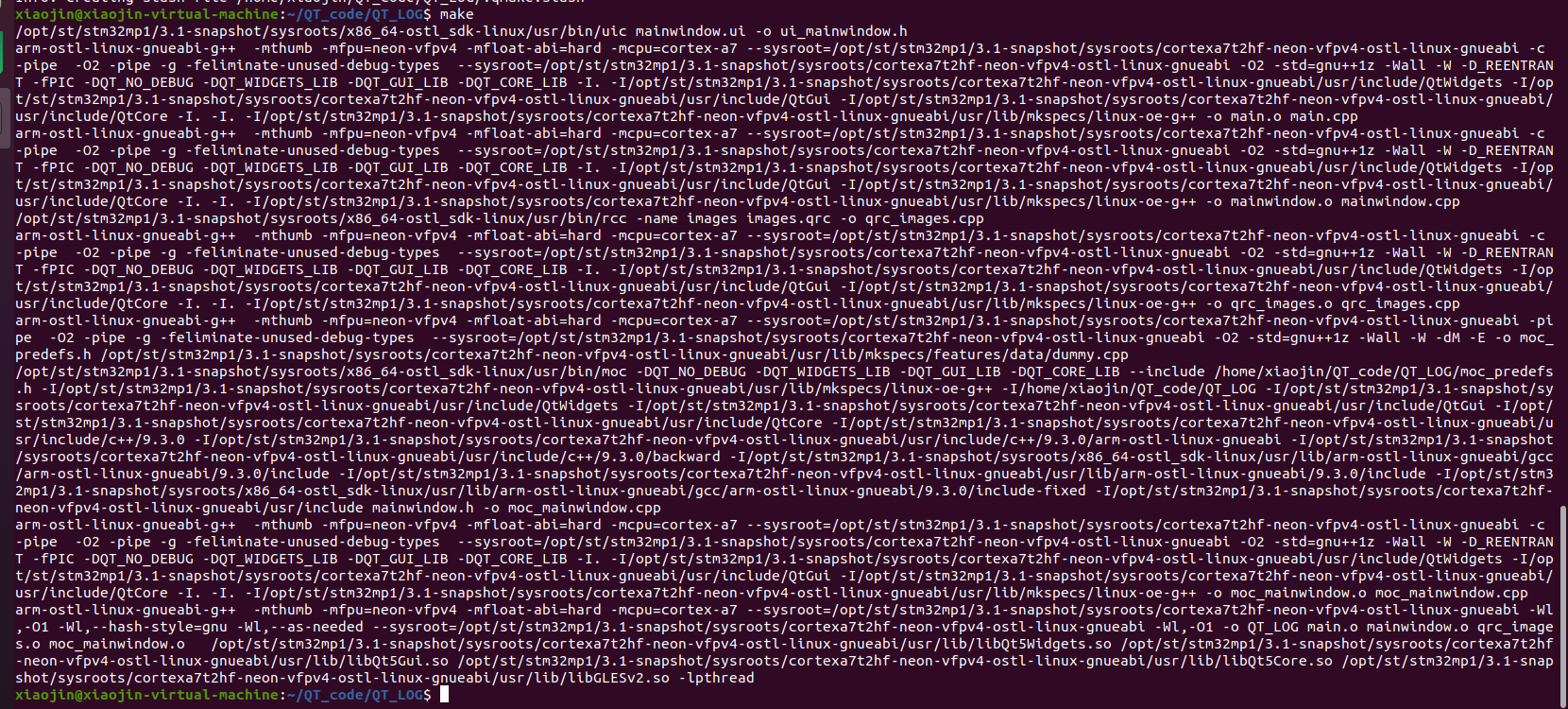 6、使用 qmake 指令生成 Makefile,用于编译(使用qmake指令需要在QT工程目录下,含.pro文件):