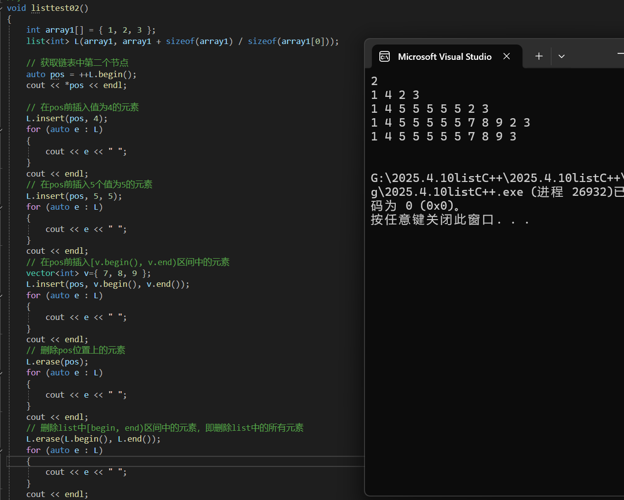 1.为什么这里的erase返回的是next(下一个位置)?而vector中返回的是原位置?这里都涉及到迭代器失效的问题,不过呢,vector的底层是数组啊,底层是连续的,而且它的erase后,后面的元素都得往前移动一个,所以说vector的erase返回的还是下一个元素位置,只不过下一个元素的位置现在是被删除元素的位置。而list的erase后,所有的元素的位置并不发生任何变化,所以说这个返回的是真真正正的下一个元素的位置。