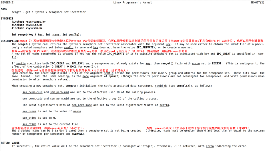 函数调用成功,则会返回信号量集的标识符(一个非负整数),函数调用失败,则会返回-1。