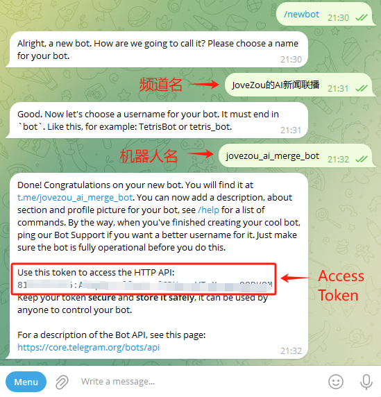 - Telegram 的 Access Token