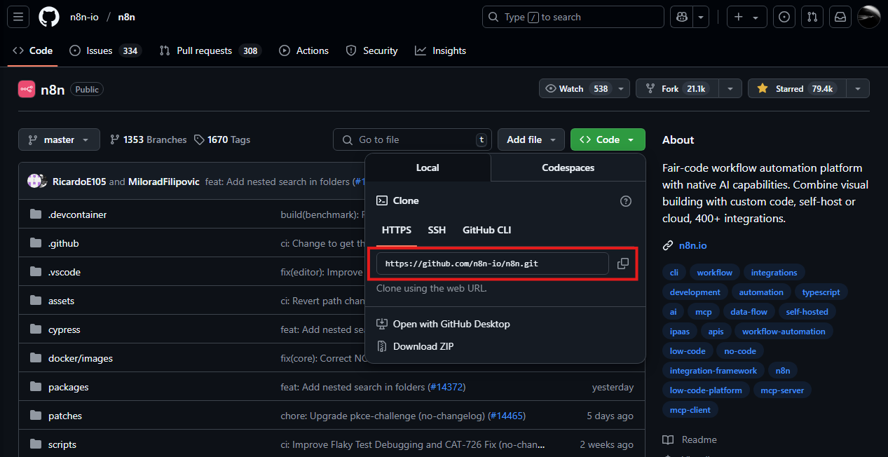 git clone https://github.com/n8n-io/n8n.git