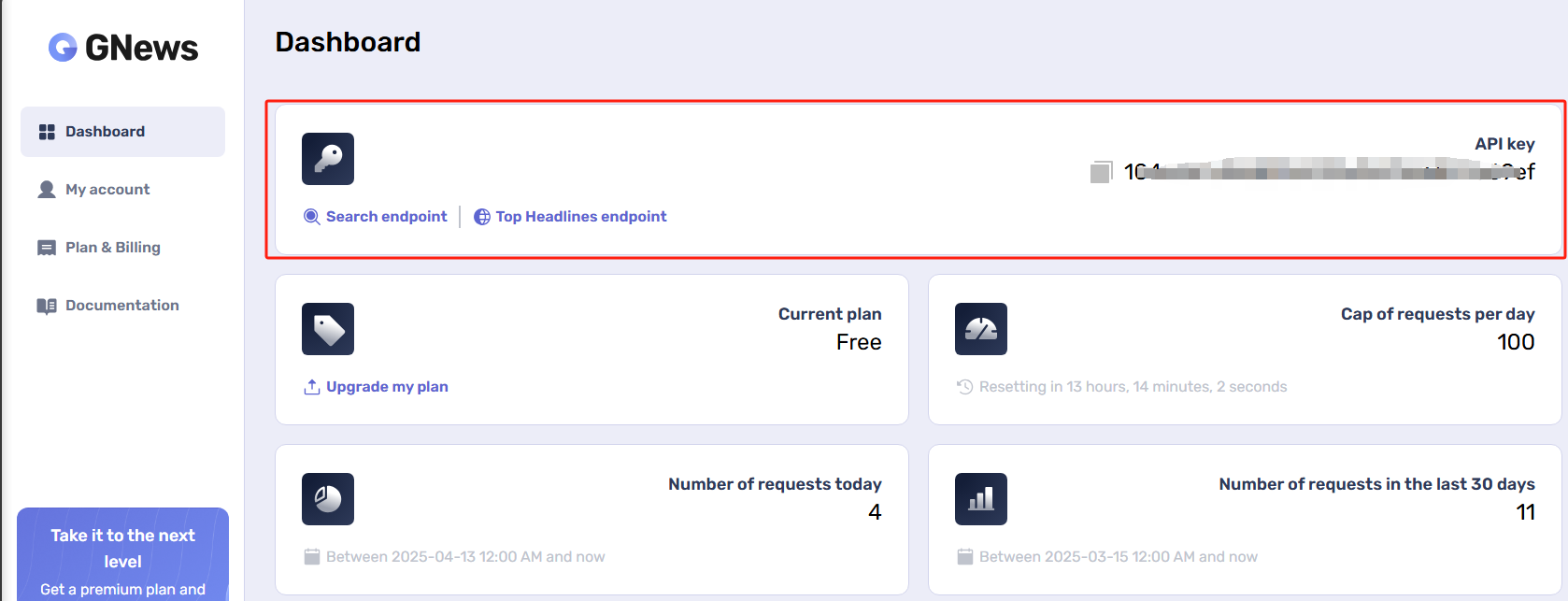 GNews 的 API Key 获取: