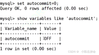 mysql> show variables like 'autocommit'; --查看关闭之后结果