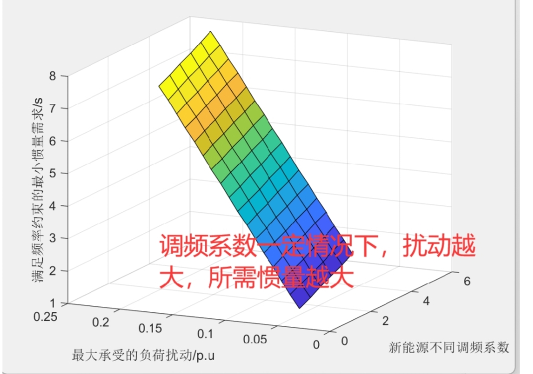 2基于构建的模型,考虑了不同调频系数,不同扰动情况下的系统最小惯量需求