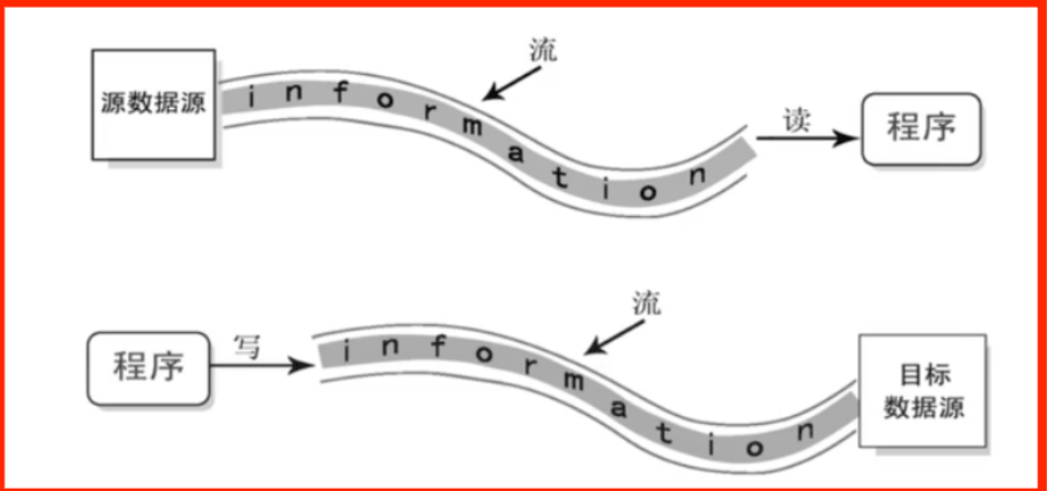 - 输入流:数据从数据源(如文件)流向程序(或内存)。