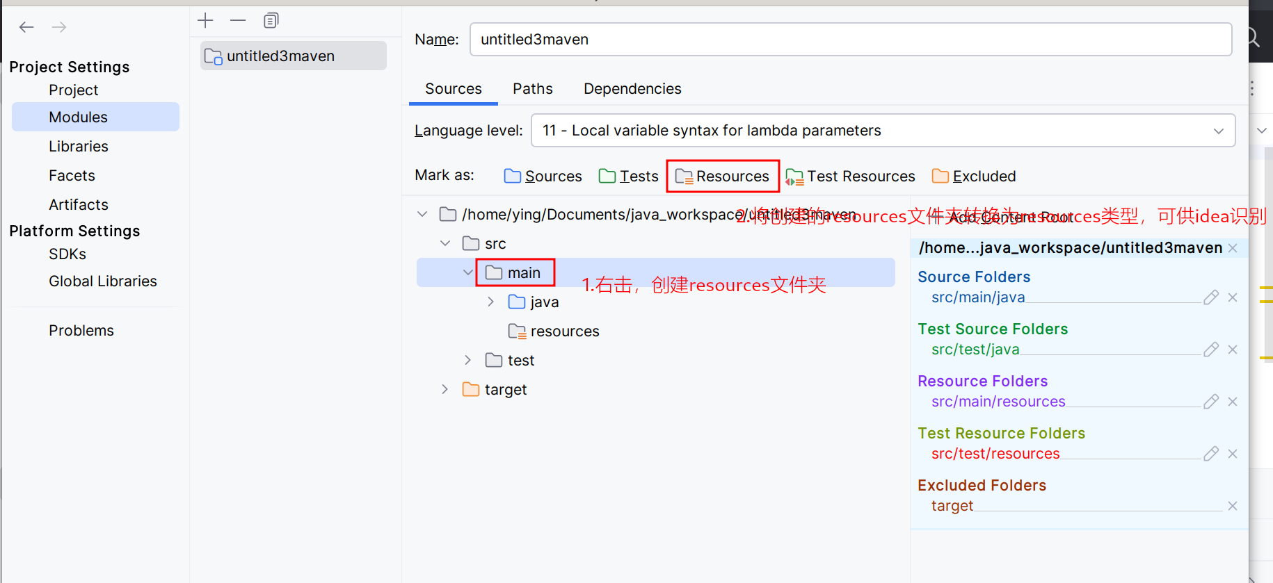 idea手动创建resources文件夹
