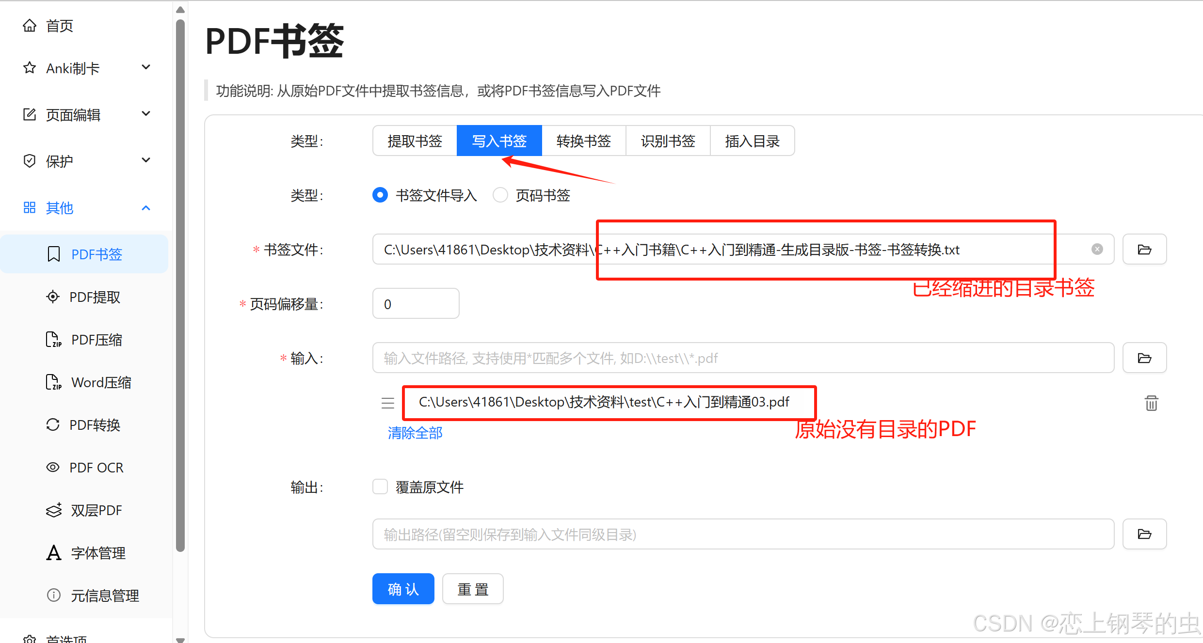 7、将已经缩进的书签写入到原始的PDF中,如下所示