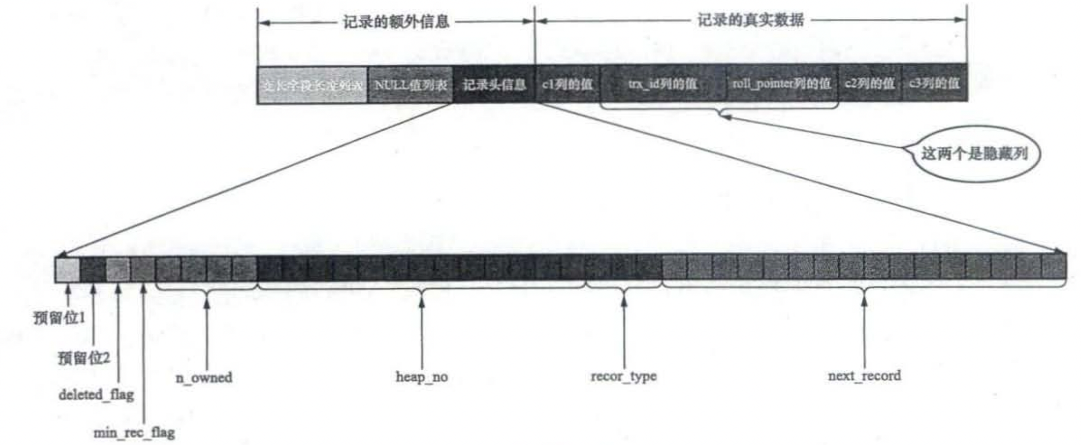 删除记录后,该记录deleted_flag设为1,next_record值变为0,前一条记录的next_record指向删除记录的next_record