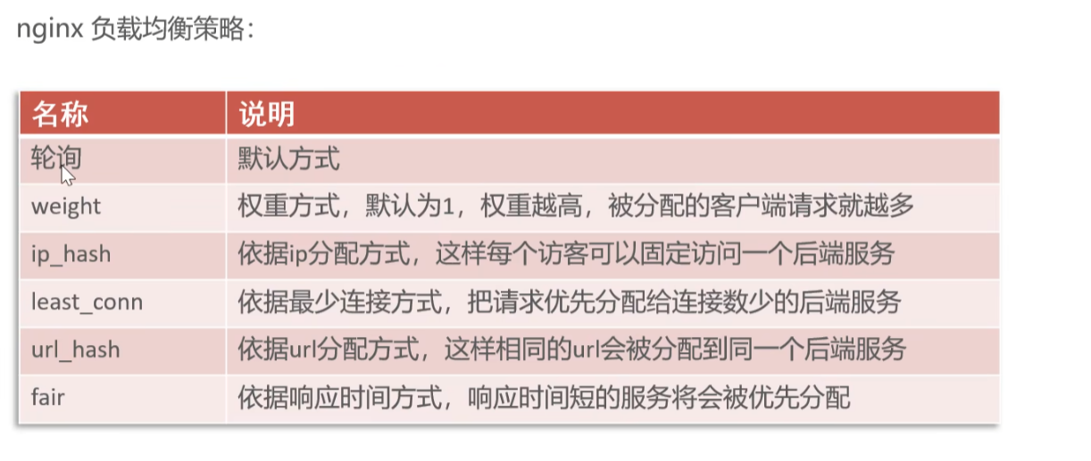 nginx负载均衡的配置方式: