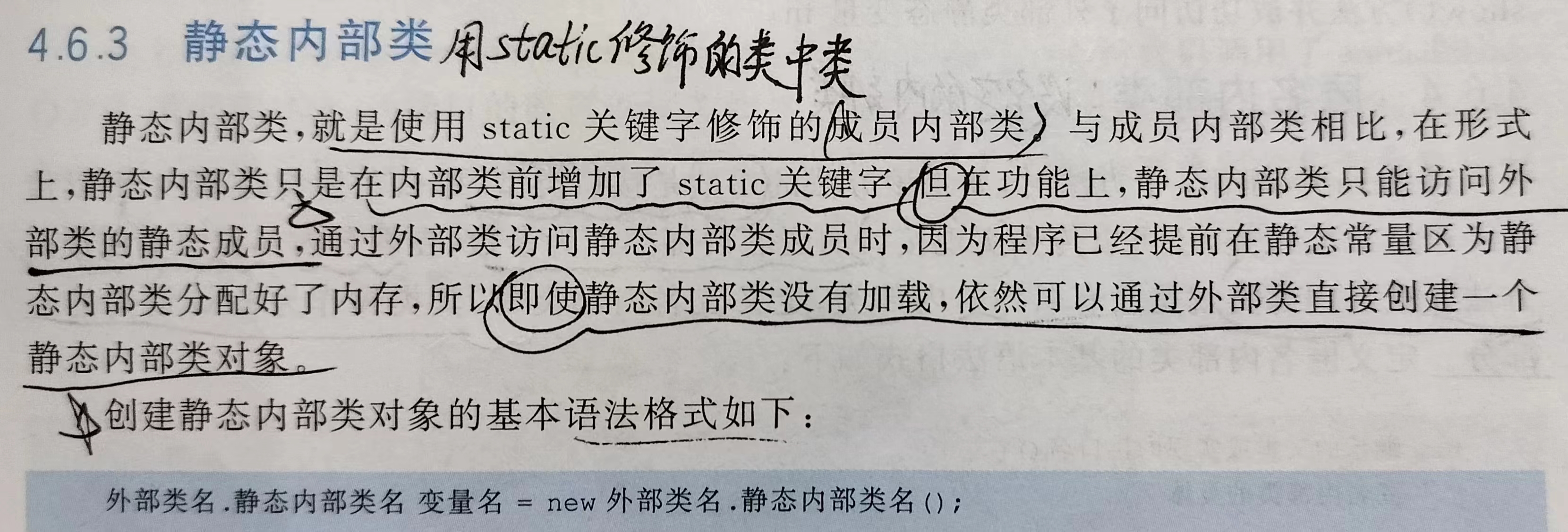 Outer.Inner inner = new Outer.Inner(); // 创建静态内部类的对象