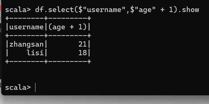 查看"username"列数据以及"age+1"数据