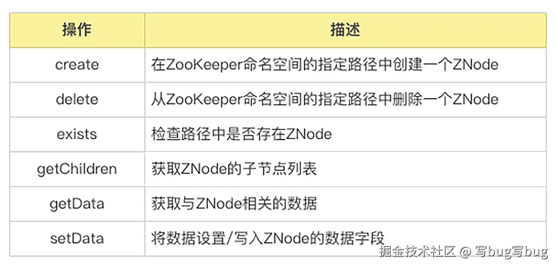ZooKeeper 中涉及的主要操作包含了以下 6 种:
