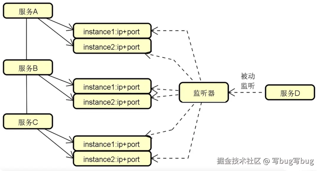 上图展示的就是一种服务监听机制。有了这一机制,服务提供者实例的状态一旦发生变化,服务消费者就能第一时间获取变更通知,从而获取最新的服务状态。