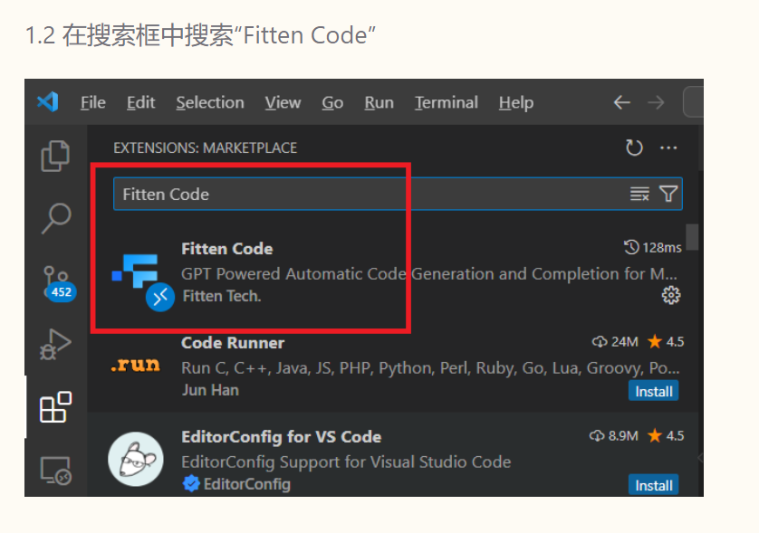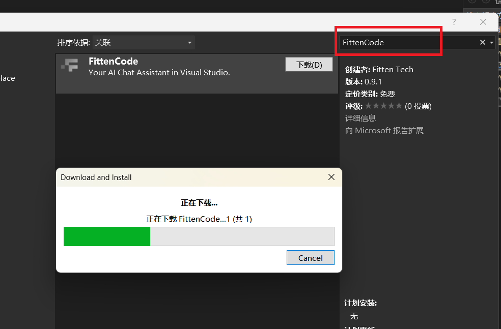 只需要在Extensions中搜索"Fitten Code"并选择对应的插件下载即可: