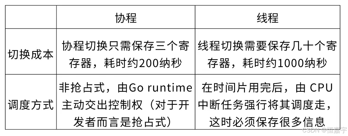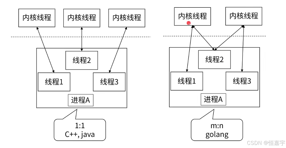- go中线程和协程并不是绑定的,一个协程可能中途会换一系列内核线程去执行,这和Java、CPP有着明显区别。