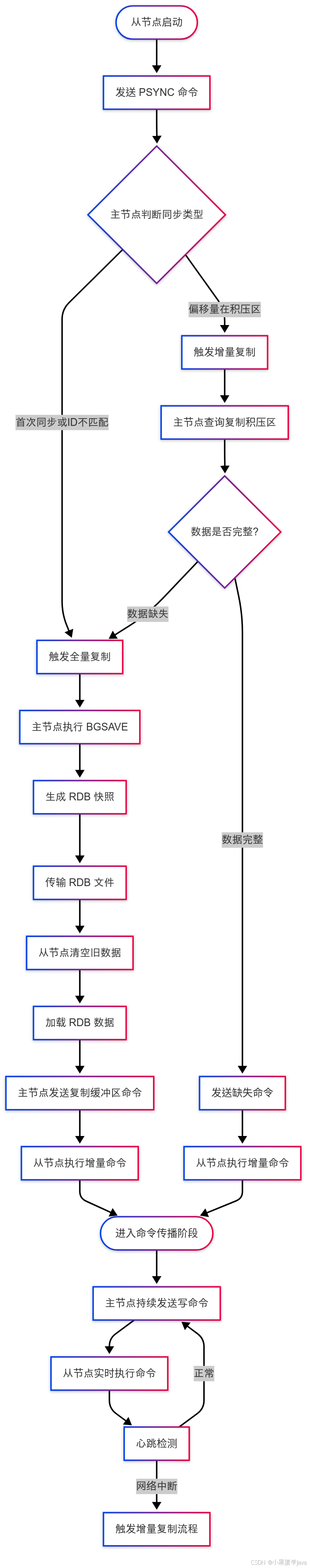 Redis 2.0 版本正式将主从复制(Master-Slave Replication)作为核心功能引入,奠定了其高可用架构的基础。以下是该机制的核心特性和实现原理: