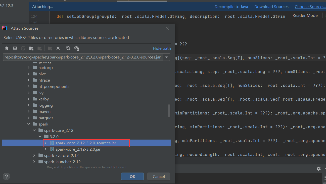 我们点击choose source之后选择下载好的-source的jar包就可以啦。这里推荐把源码放在仓库下对应的jar包文件夹下。