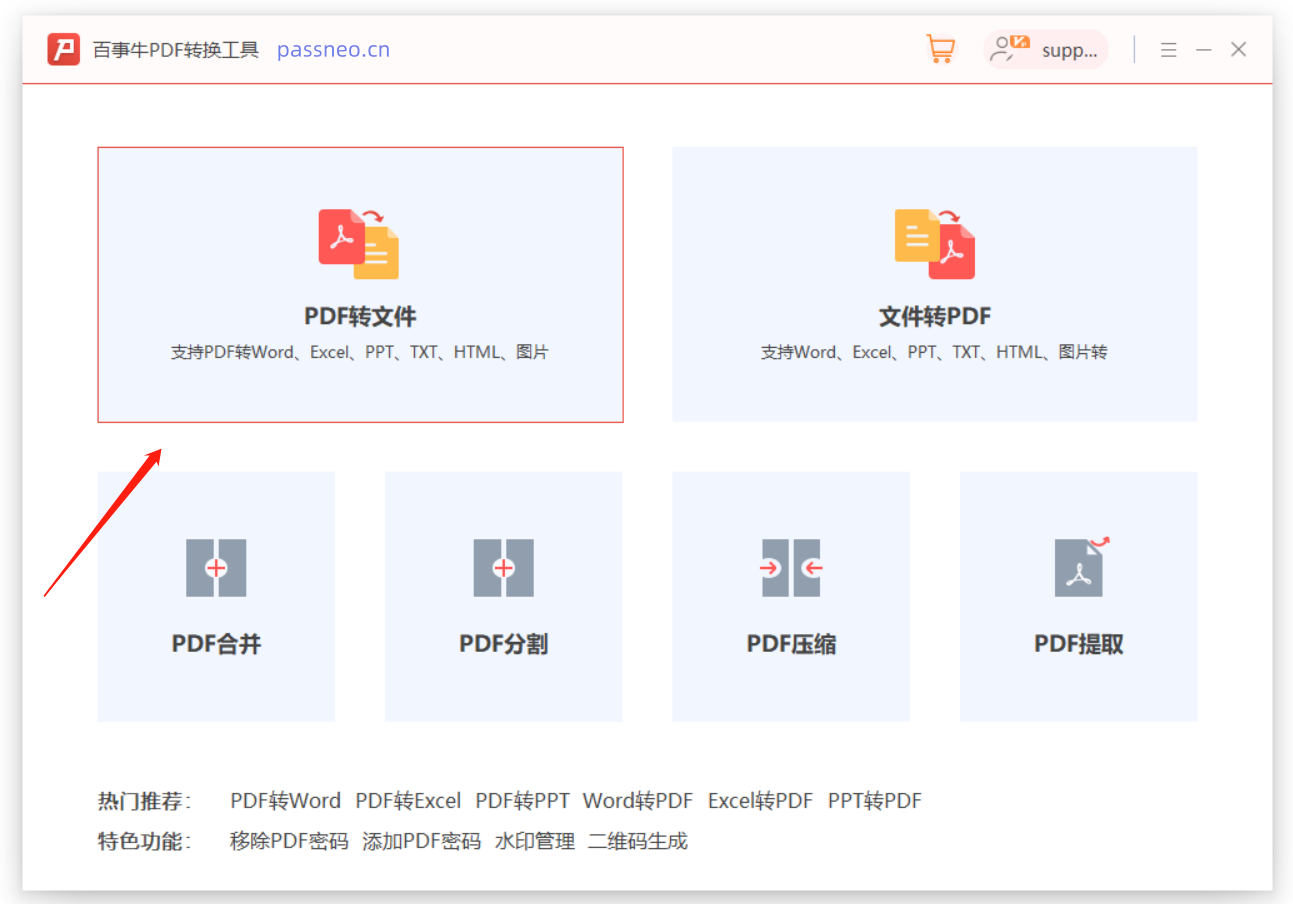1、点击工具里的【PDF转文件】模块。