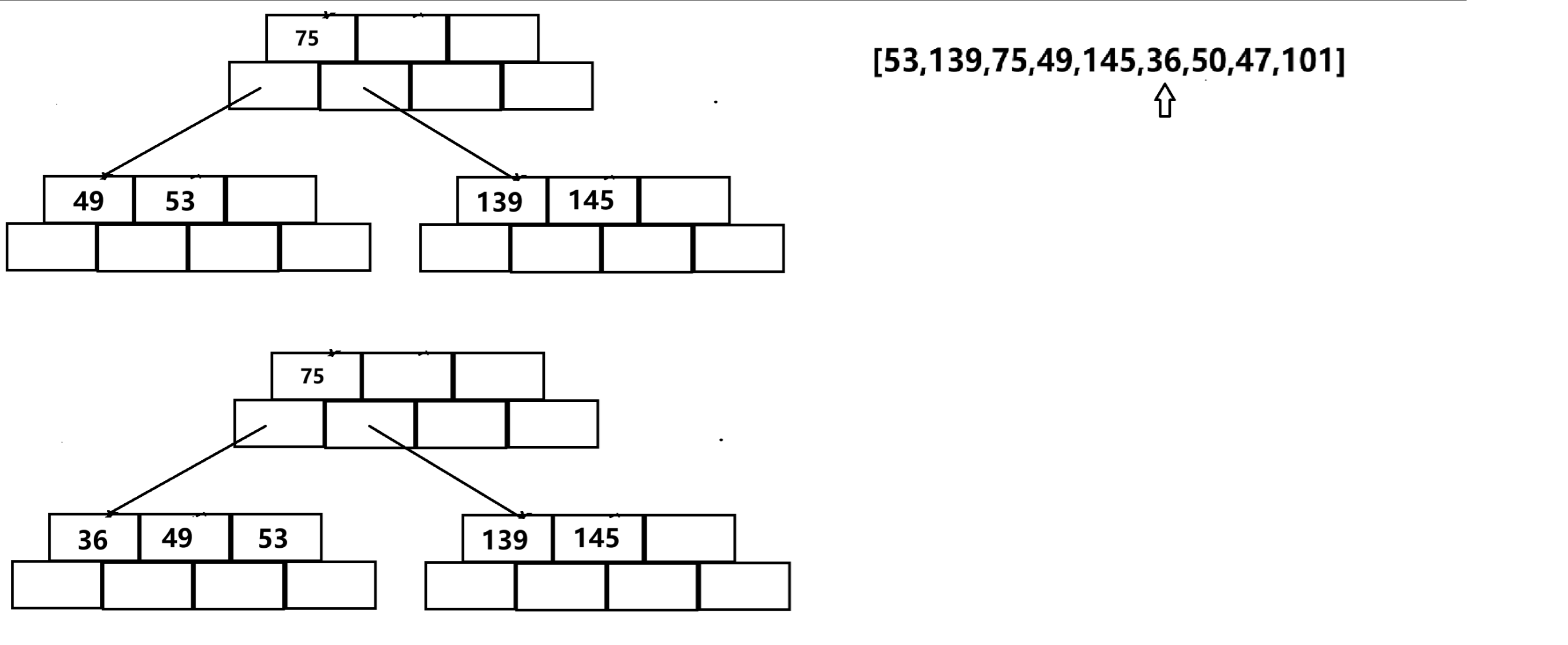 以{53,139,75,49,145,36,50,47,101}为例: