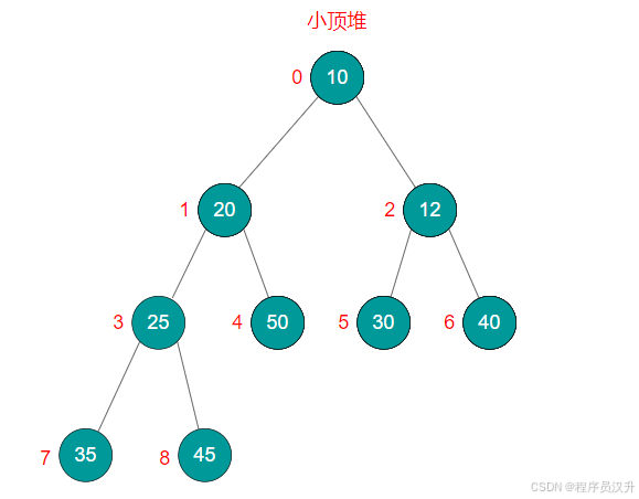 小顶堆特点 : a r r [ i ] < = a r r [ 2 i + 1 ] & & a r r [ i ] < = a r r [ 2 i + 2 ] arr[i]<=arr[2i+1]\&\&arr[i]<=arr[2i+2] arr[i]<=arr[2i+1]&&arr[i]<=arr[2i+2] //i对应第几个节点,i从0开始标号