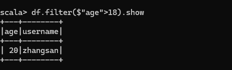注意:此时得到的 RDD 存储类型为 Row