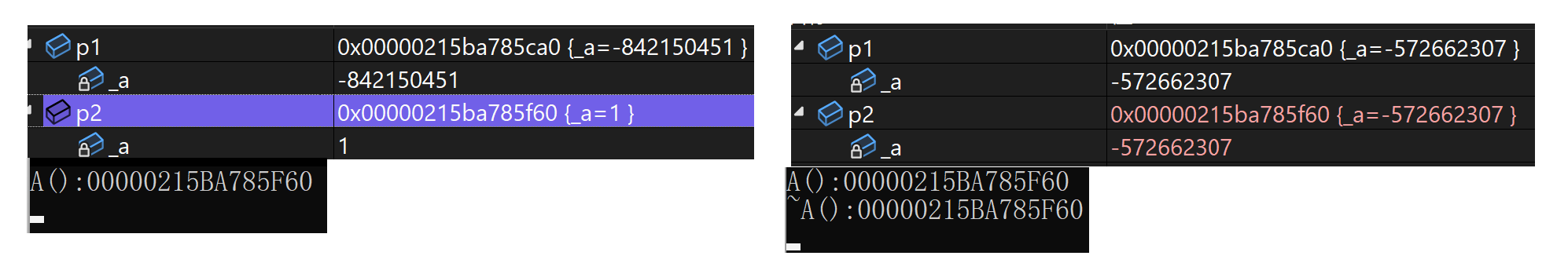 调式时看到也有初始化,因为A中有缺省参数,提供了默认构造。