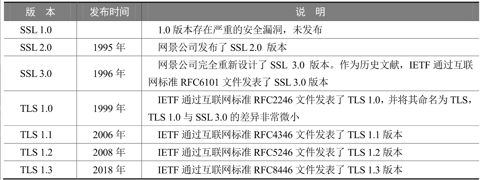 TCP是传输层的协议,但是它是明文传输的,是不安全的。SSL的诞生给TCP加了一层保险,为TCP通信提供安全及数据完整性保护。TLS只是SSL的升级版,它们的作用是一样的。TLS(Transport Layer Security,传输层安全协议)由两层组成:TLS记录(TLS Record)和TLS握手(TLS Handshake)。TLS协议是更新、更安全的SSL协议版本。SSL/TLS可以理解为安全传输层协议不同发展阶段的版本。1999年,SSL应用广泛,已经成为互联网上的事实标准。IETF(Internet Engineering Task Force,国际互联网工程任务组)在1999年把SSL标准化。完成标准化之后,SSL协议名称被改为TLS。SSL/TLS位于应用层和传输层之间,除了HTTP外,它可以为任何基于TCP传输层以上的应用层协议(如WebSocket协议)提供安全性保证。理论上,SSL/TLS协议属于传输层。从理论模型的维度来说,该协议在TCP/IP协议栈的分层结构中所处的层次位置大致如图12-1所示。但是,在具体的编码实现上,SSL/TLS协议属于应用层。从实现的维度来说,该协议在TCP/IP协议栈分层结构中所处的层次位置大致如图