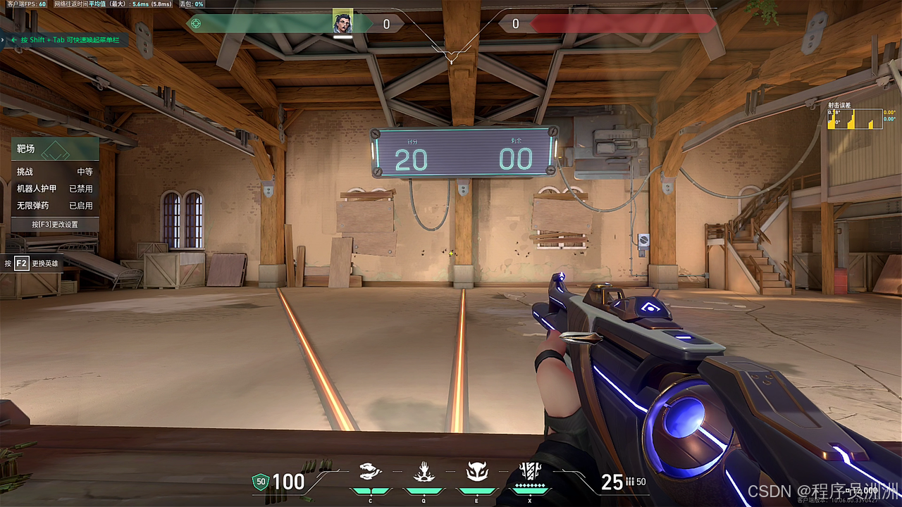 因为ToDesk在《黑神话:悟空》方面的性能和体验感都非常好,我想着继续用ToDesk云电脑 尝试一下别的游戏。所以接下来继续使用ToDesk,切换身份为瓦学弟,最高支持120hz显示,可惜我的显示屏体现不出来,可以看到与云电脑和游戏服务器的延迟只有10hz,操作延迟相比英雄联盟这样的moba游戏有点明显,拉枪的时候会感觉略有卡顿,推荐在更好的网络环境下运行,但也不是不能玩,我认为如果你是下三段偶尔娱乐以下还是OK的!这波我在云电脑里打中等靶打了20个,有没有瓦学弟评价一下实力!