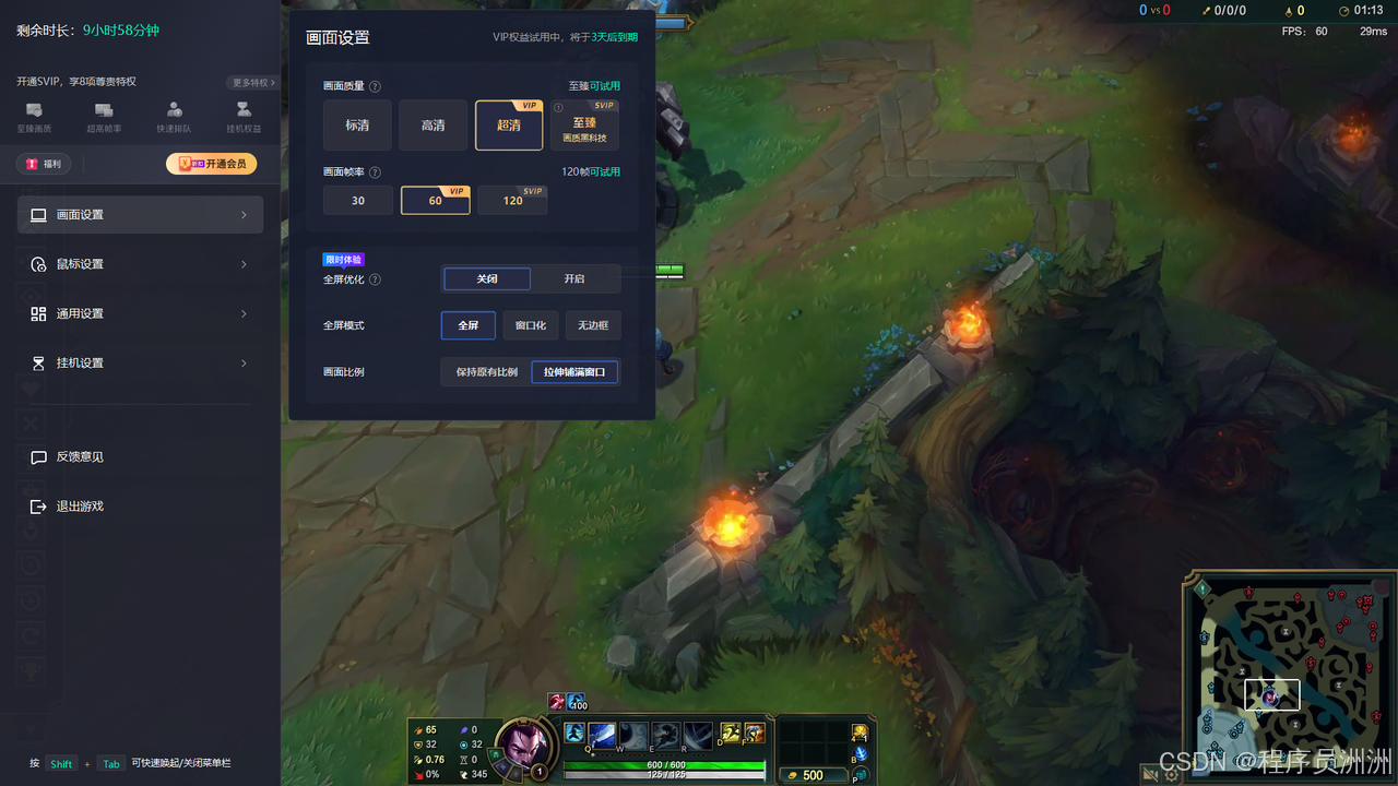 首先使用START云游戏。登录英雄联盟,进入训练模式,我们可以从菜单中试用VIP高帧率,由于我的显示屏只有60hz,所以这里试用60hz,云电脑和游戏服务器的延迟为23ms,操作延迟则没有给出具体参数。作为英雄联盟10年老玩家客观评价一下啊,只要你不是对低延迟要求很高的竞技类玩家,目前我用wifi信号的延迟也能达到一个可以游玩的水平了,比我原来的卡的不行的本地运行好了非常多!