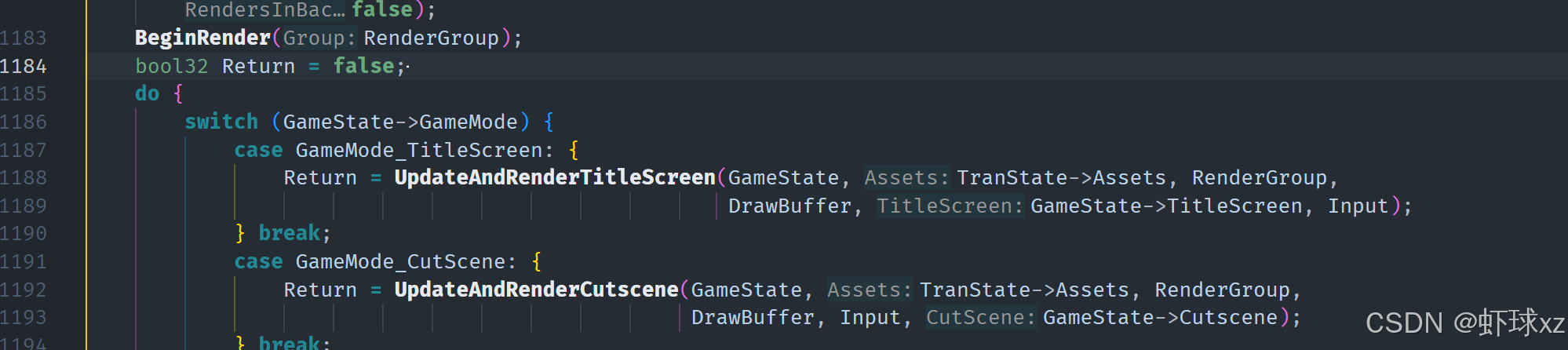 do-while或等效结构,允许在模式切换后立即重新判断游戏当前模式; UpdateAndRenderCutscene和UpdateAndRenderTitleScreen被调整为在处理完输入后返回一个布尔值;- 如果返回