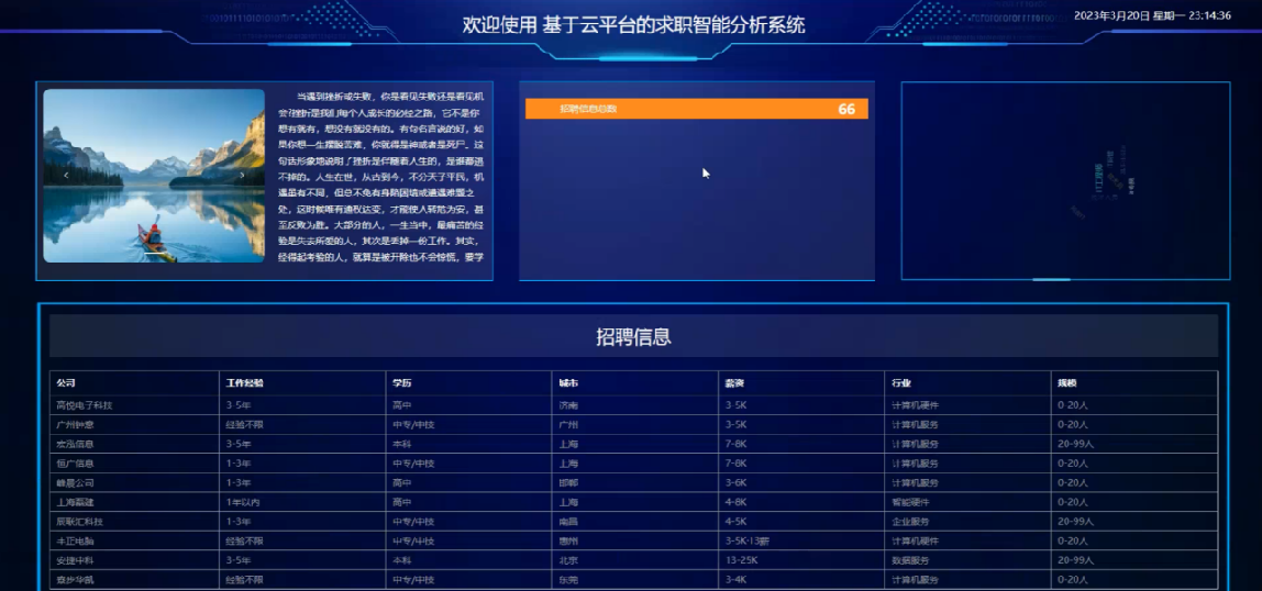 本求职智能分析系统的数据库采用的是MySQL数据库,并且选择了Python语言、网络爬虫技术、和Django框架进行开发项目,在项目开发过程中,实现了系统功能模块的安全性、实用性、稳定性、易维护和页面简单等特点。