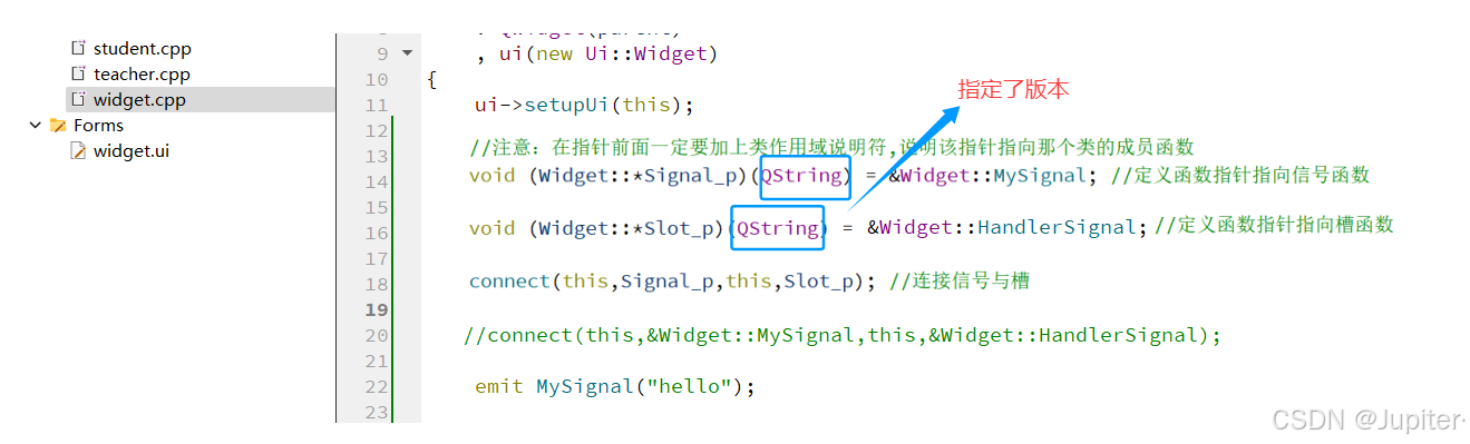 2、在 widget.cpp 中实现槽函数,并且关联信号和槽