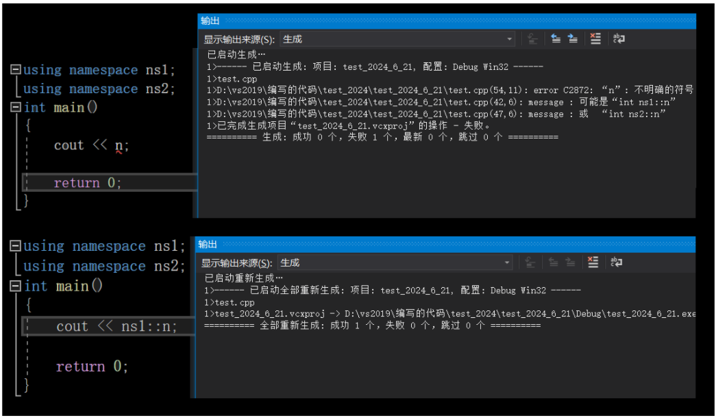 就会产生访问歧义但并不是说多个命名空间不能同时展开,在指定域的情况下,是可以同时展开使用的