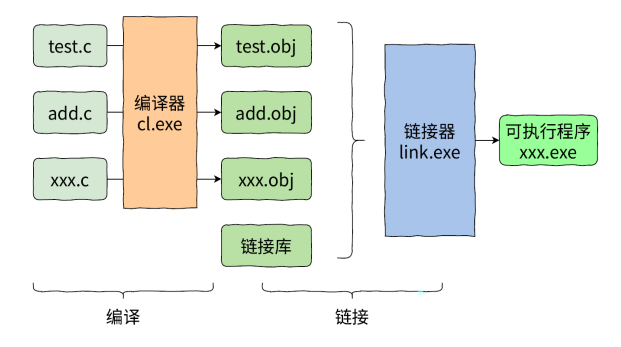 - 在前面的C语言课程中,我们学了一个项目中的文件要经过预处理,编译,汇编,链接等过程才能生成可以直接运行的.exe程序。