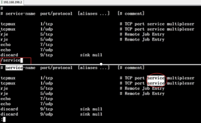 /services(services是搜索内容),n键(既next)可以遍历所有搜索到的内容,并且搜索到的内容会用反白显示: