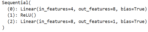net = nn.Sequential(nn.Linear(4, 8), nn.ReLU(), nn.Linear(8, 1))