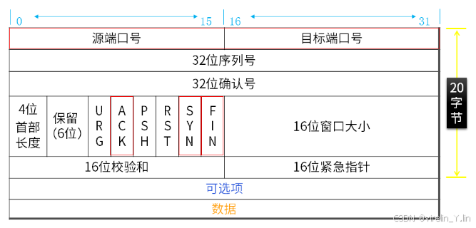 - FIN:当TCP断开连接时将该位置为1