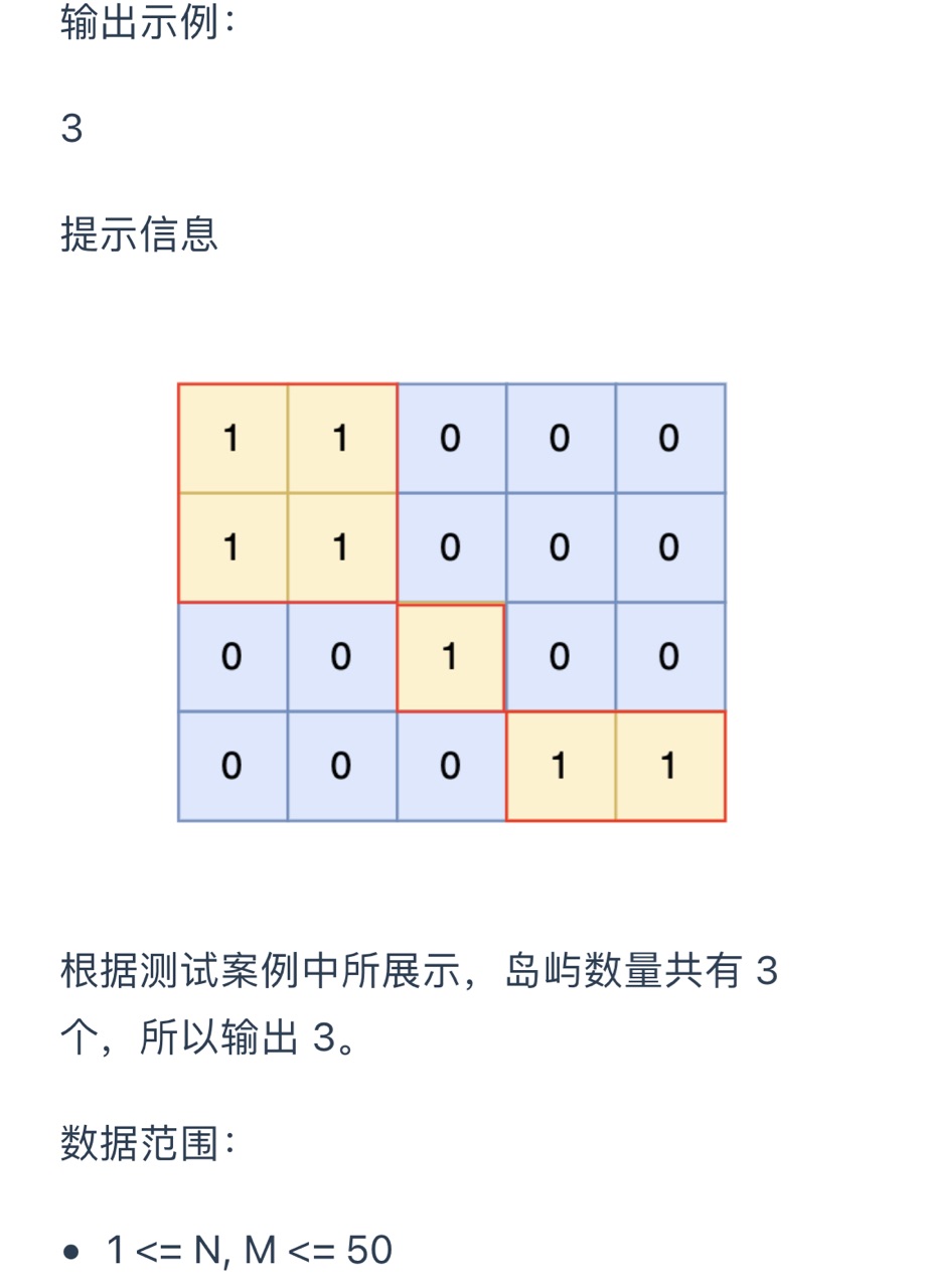 1、每座岛屿只能由水平方向和/或竖直方向上相邻的陆地连接形成。