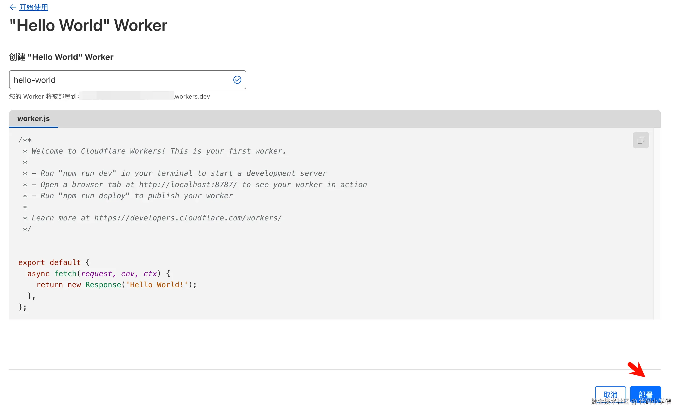 点击部署就部署成功了,会有一个 账号.workers.dev 的默认地址。