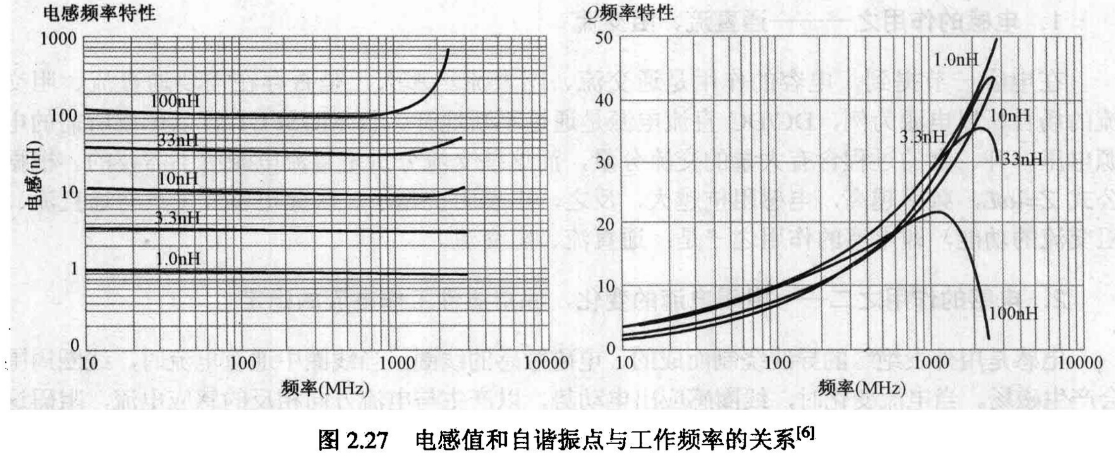 电感值和自谐振点与工作频率的关系如图2.27所示。