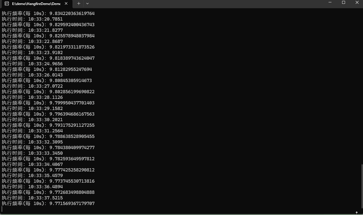 执行频率(每 10s):{(_count / (DateTimeOffset.Now - _lastTime).TotalSeconds * 10)}