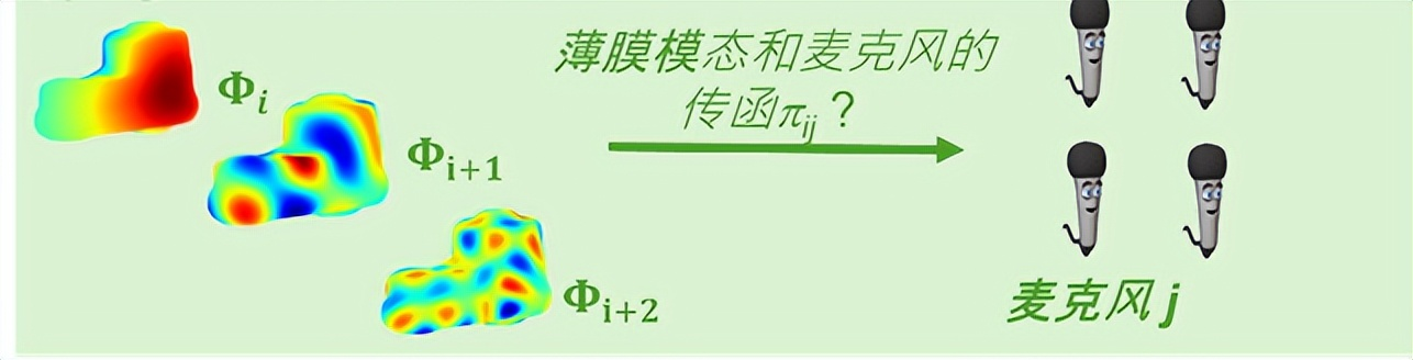 **3) 逆方法(声源识别):**使用每个近场麦克风与薄膜模态之间的传递函数及实验测量数据,求解最小二乘问题匹配实验结果,以计算每个薄膜模态的参与因子。