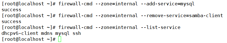 [root@localhost ~]# firewall-cmd --zone=internal --add-service=mysql