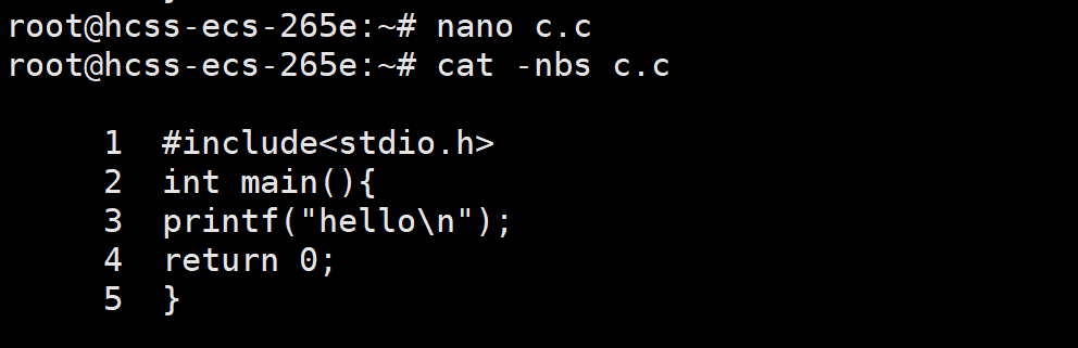 我们在root路径下面写一个hello 的c语言可执行程序