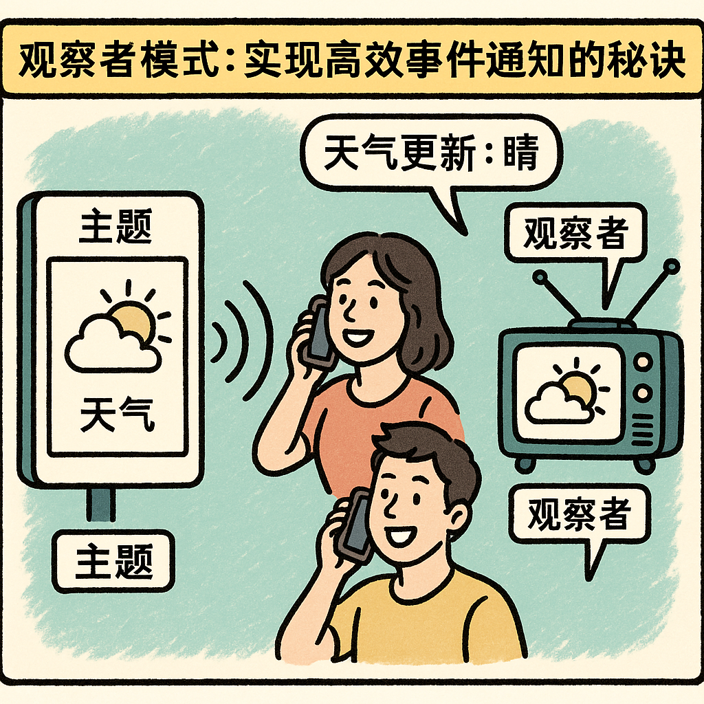 在日常生活中,我们经常需要同步通知多方的信息变更。比如天气预报系统、股票价格波动提醒、社交媒体的点赞通知等。这些场景中,通知机制需要高效、灵活,而不会因为通知方的变化影响系统整体。