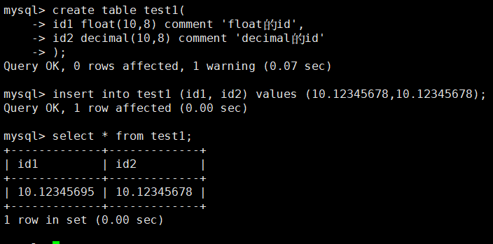 float表示的精度大约是7位,decimal的精度更高。其中,它整数最大位数m为65。支持小数最大位数d是30。如果d被省略,默认为0;如果m被省略,默认是10。
