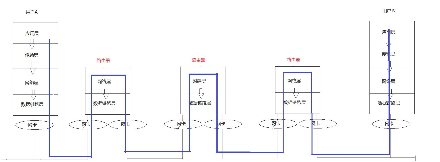 - 网络层: 负责地址管理和路由选择. 例如在 IP 协议中, 通过 IP 地址来标识一台主机, 并通过路由表的方式规划出两台主机之间的数据传输的线路(路由). 路由器(Router)工作在网路层。
