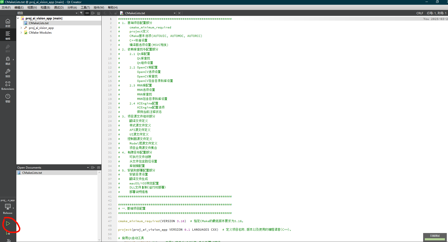 首先,在 Qt Creator 中,确保你的项目配置是 "Release" 模式。Release 构建会进行代码优化,生成的可执行文件运行效率更高,体积也可能更小。点击构建按钮,生成 proj_ai_vision_app.exe 文件。