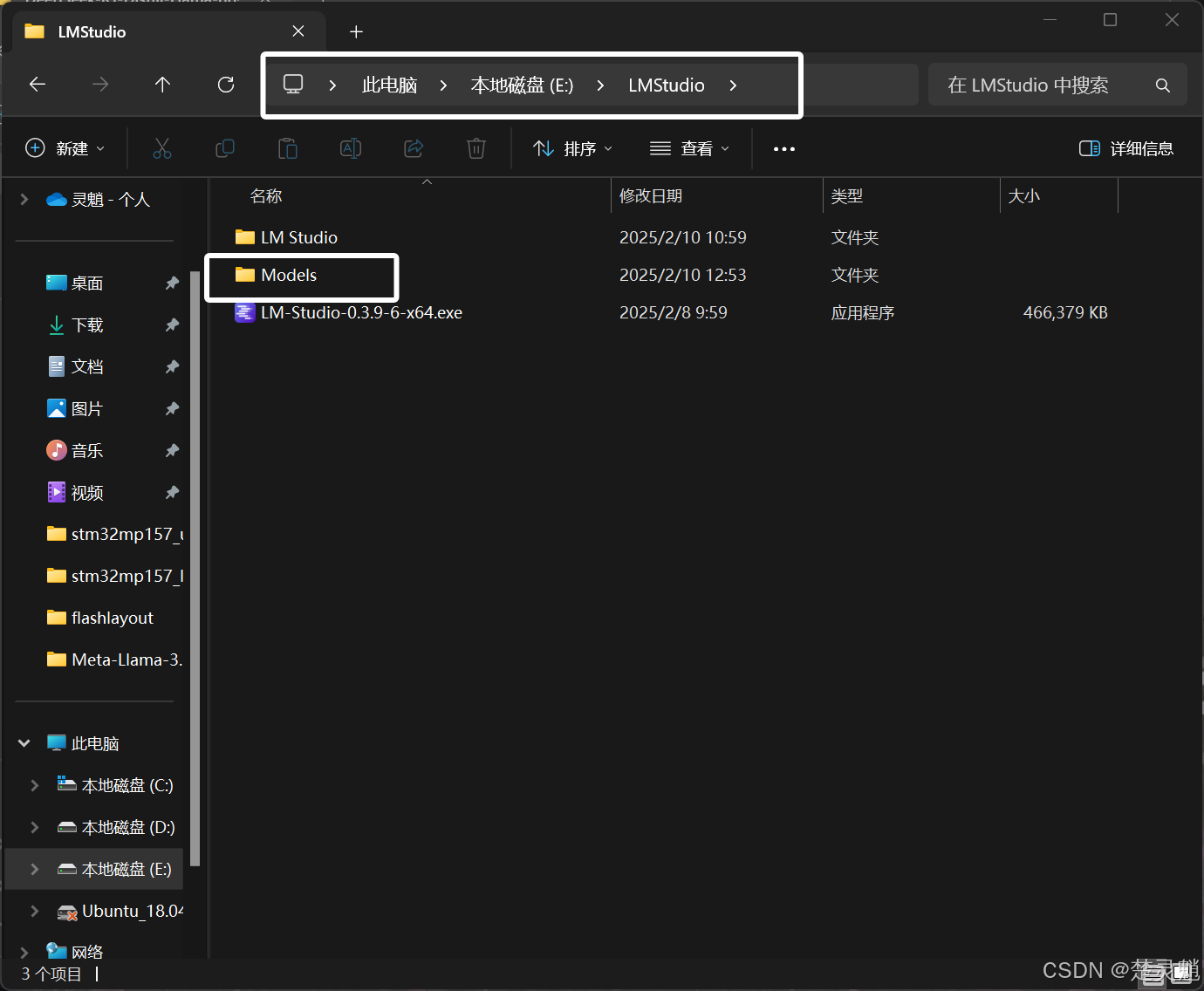 这里我们先将模型放到指定的路径,如果你是小白,我不建议你修改这些操作,后面的步骤很重要。我们在LM Studio安装的文件夹中新建一个名为"Models"的目录: